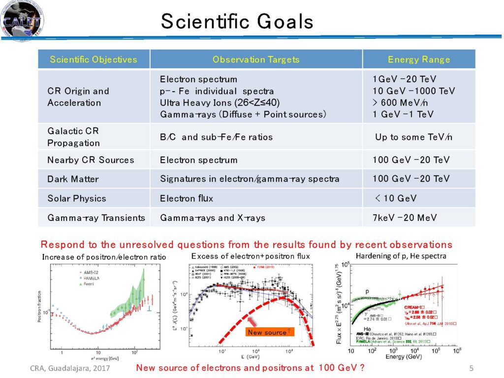CALET is funded in the US by NASA, in Italy by the Italian Space Agency (ASI), and in Japan by the Japan Aerospace Exploration Agency (JAXA).